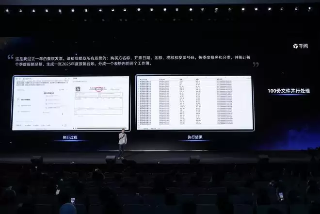 在千问产品经理的现场演示中,上百张混乱的发票可以在几分钟内被整理成清晰的报销台账,一份数据截图能被自动转化为带有趋势图和战略建议的可视化报告。
