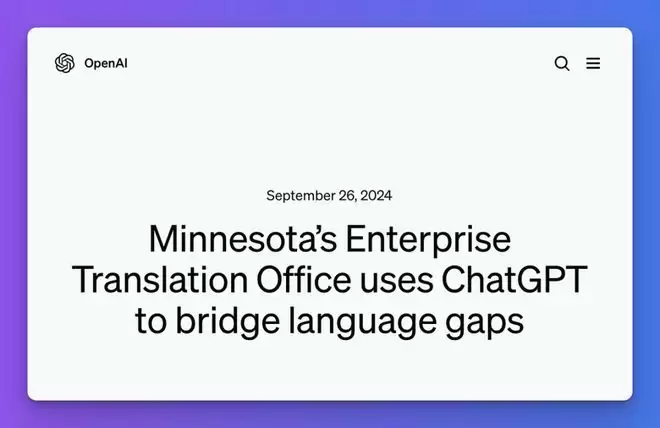 2024年,美国明尼苏达州政府利用ChatGPT加快并扩大面向非英语居民的翻译服务