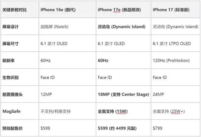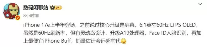 iPhone 17e配置确认:60Hz刷新率+A19+灵动岛,上半年发布