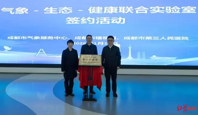 1月16日,全国首个聚焦气象、生态与健康交叉领域的创新平台——“气象-生态-健康联合实验室”在四川成都正式揭牌成立。该实验室由成都市卫健委、成都市气象局、成都市公园城市局指导,市第三人民医院、市气象服务中心、市植物园联合成立。