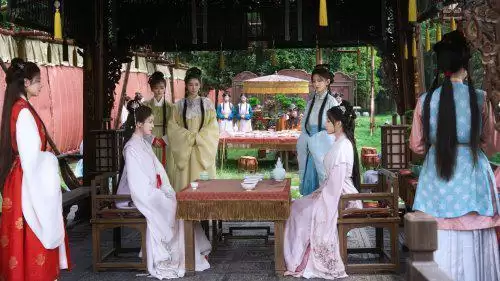 此外,《玉茗茶骨》中无处不在的传统文化、非遗技艺、东方韵味,在社交媒体上持续发酵,吸引传统文化的爱好者长期关注、深度解读。其中,陆江来的波浪纹发冠、荔枝纹半壁分别对应中国传统服饰纹样中的“自由勇敢”“利子吉利”等美好象征;荣善宝为代表的荣氏一族女眷所佩戴的“卧兔儿”,即皮草所制抹额,也与沈从文所著《中国古代服饰研究》中的图样相符;荣家老夫人所执装饰有茶花纹样的手杖、祭茶礼所挂悬幡、只在荣善宝房门前搁置的铜鹤等道具背后的文化出处均在细心观众的梳理中与文化典籍一一对应。荣氏一族女性掌家的渊源出自历史上真实存在的“东女国”,“断梅”意为梅雨季结束、源自晋代《风土记》“梅熟时雨,谓之梅雨”的节气等细节考据,尽显创作者的文化底蕴。传统文化中“冷知识”的复热,更彰显《玉茗茶骨》为弘扬文化精粹付出的笨功夫和巧心思。