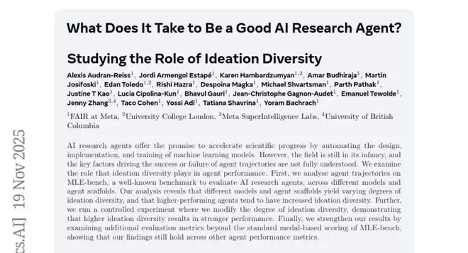 当我们谈论AI研究助手时,你可以把它们想象成特别聪明的科研助理。就像人类研究者一样,它们需要提出研究思路、设计实验、编写代码、训练模型,然后分析结果。但是,什么因素决定了一个AI助手能够在科研工作中表现出色呢?Meta的研究团队发现了一个出人意料的答案:多样化的想法产生能力。