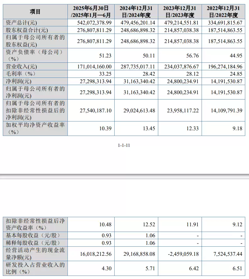 报告期内(2024年至2025年上半年),元立光电的营业收入分别为1.96亿元、2.34亿元、2.88亿元、1.71亿元;净利润分别为1419.15万元、2480.02万元、3116.33万元、2729.83万元。