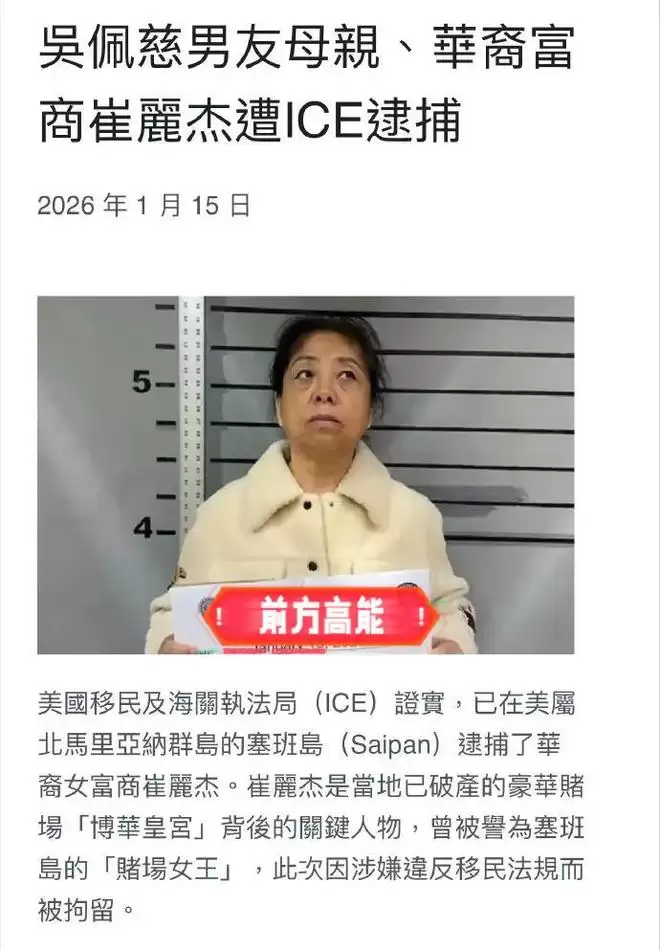 崔丽杰,女明星吴佩慈的准婆婆,曾经在澳门赌厅界呼风唤雨的神秘女大佬,后来在塞班建赌场的“塞班女王”,和娱乐圈不少富婆私交甚笃,包括港星吕良伟的富豪老婆。