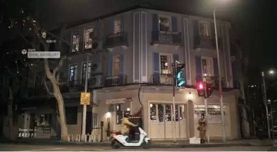 这里是胡羞(卢昱晓饰)发短信回绝筑翎offer的路口,背景是上海音乐学院附近的网红餐厅gubigubi。