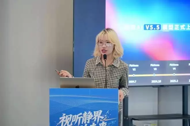 在企业主题分享与AI实践案例交流环节,来自产业前沿的嘉宾聚焦人工智能赋能视听领域的最新成果,围绕新工艺、新模态、新场景与新赋能展开分享。Minimax海螺AI内容总监潘雨莹展示了大模型在AI动画、短剧创作、短视频生成及动态漫画等领域的创新实践成果,分享了AI视频工具在流程增效与创意赋能方面的显著成效。PixVerse拍我AI中国社区生态负责人蔡倩雯围绕“从全球创意工具到产业协同新生态”,展示了基于AI视频工具形成的稳定生产流程与交付标准,并分享了其为超级创作者与企业用户构建的赋能网络与协同解决方案。