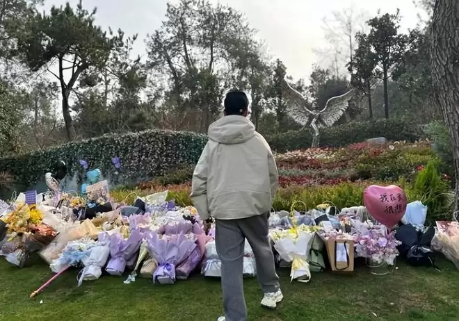 除了在金宝山的纪念园,湖北李玟的墓地,也同样被前往纪念的粉丝们打造成了一片温柔的花海。