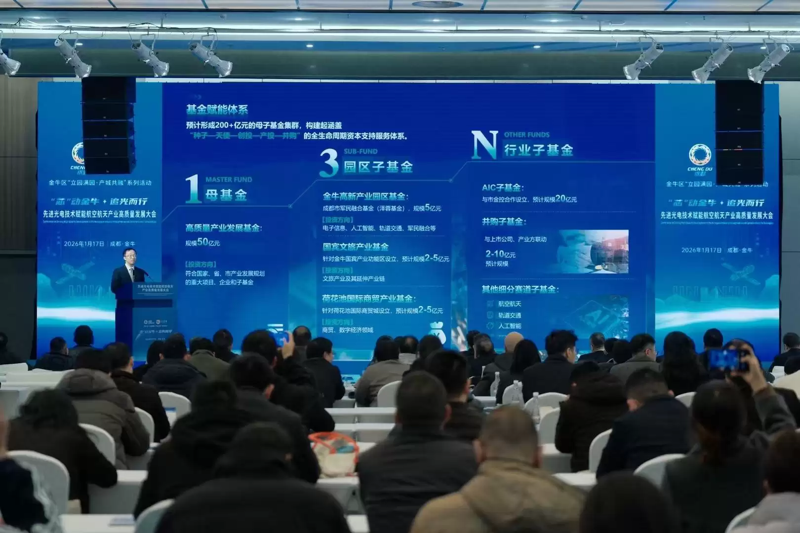 今天上午,“芯”动金牛·追光而行——先进光电技术赋能航空航天产业高质量发展大会上,金牛区“金融全链赋能矩阵”发布,预计以50亿元母基金放大形成超200亿元的母子基金群,助力光电产业集群成势;半导体封装测试验证公共服务平台也在现场启动。