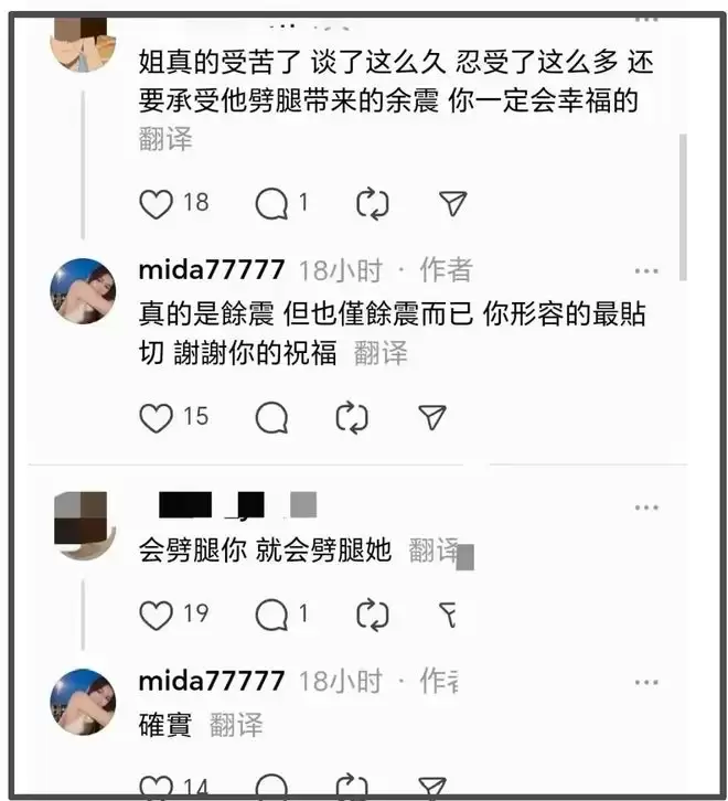 顺着mida的社媒发言,还能看到她去年11月底的吐槽,表示前任说过最恶心的话是“如果你去爆料,你看还有哪个男的会要你,超会pua”,从交往时间线来看,基本上就是吐槽林俊杰了,不然她不会默默隐身好几年。清醒回头看,这句话不仅是威胁,还有严重的男凝,把女性价值建立在男性需求上。