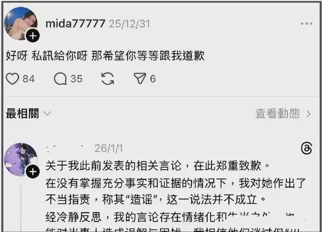 林俊杰与前女友mida合影曝光的过程相当滑稽,此前林俊杰官宣与七七恋情,mida隔空内涵林俊杰是劈腿仔,林俊杰粉丝在其评论区怒斥没证据是胡编乱造,mida就表示可以私信证据希望对方能道歉。之后,这位粉丝许是看到了证据,便在mida的评论区认真道歉,且反省了自己的不当措辞和激烈情绪。