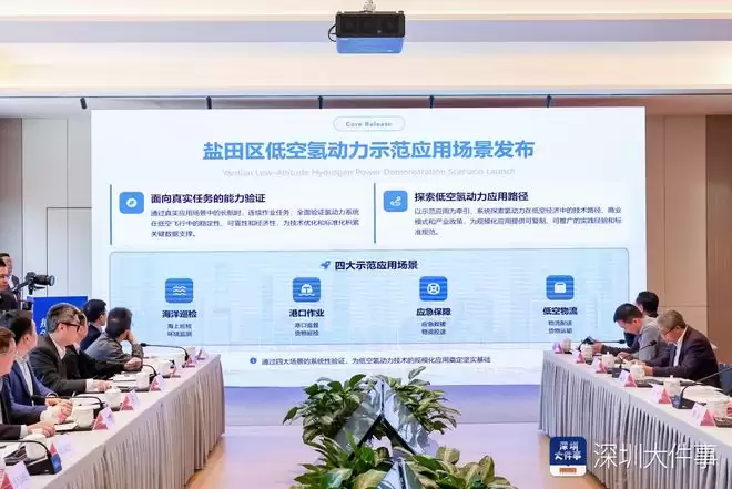 盐田区人民政府发布了低空氢动力多元示范应用场景,涵盖海洋巡检、港口作业、应急保障和低空物流等领域。盐田区副区长彭礼寿表示:我们选择氢动力,正是看中其3-5倍续航提升、零排放绿色环保、快速补能高效便捷、耐低温环境适应性强等核心优势,这与盐田区高质量发展、绿色发展的理念高度契合。我们将努力把盐田区打造成为低空氢动力应用示范区。