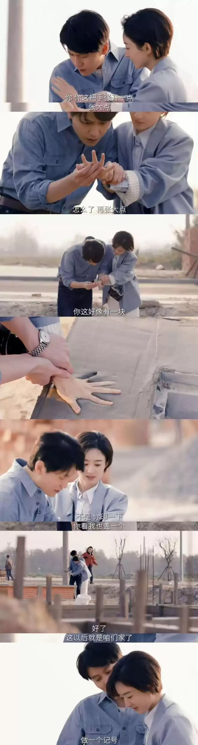 地基还没有干,杜涛突发奇想,把李秋萍和自己的手掌都印在上面。