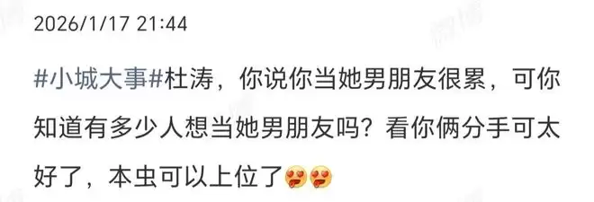 杜涛,你说你当她男朋友很累,可你知道有多少人想当她男朋友吗?看你俩分手可太好了,本虫可以上位了。