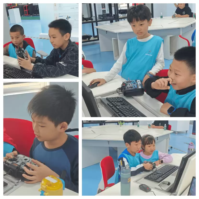 随后,孩子们迎来了本次活动的第一个实践环节——新能源无人机模拟操作。在引导员的指导下,他们通过模拟器操控虚拟飞行器,体验了无人机在巡检监测、数据采集等场景中的应用。从起飞、巡航到降落,孩子们谨慎操作,仿佛置身于真实的飞行任务中。这一环节让孩子们从空中视角感受到了新能源技术为智能设备带来的无限可能,进一步点燃了他们对绿色创新的热情。