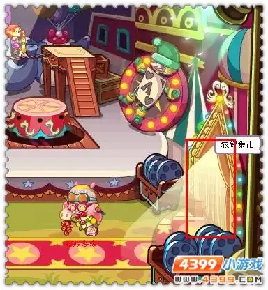 进入马戏团后,找到里面的传送门,就能顺利抵达农贸集市了。