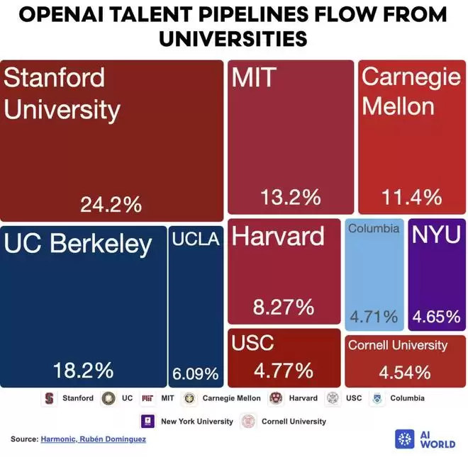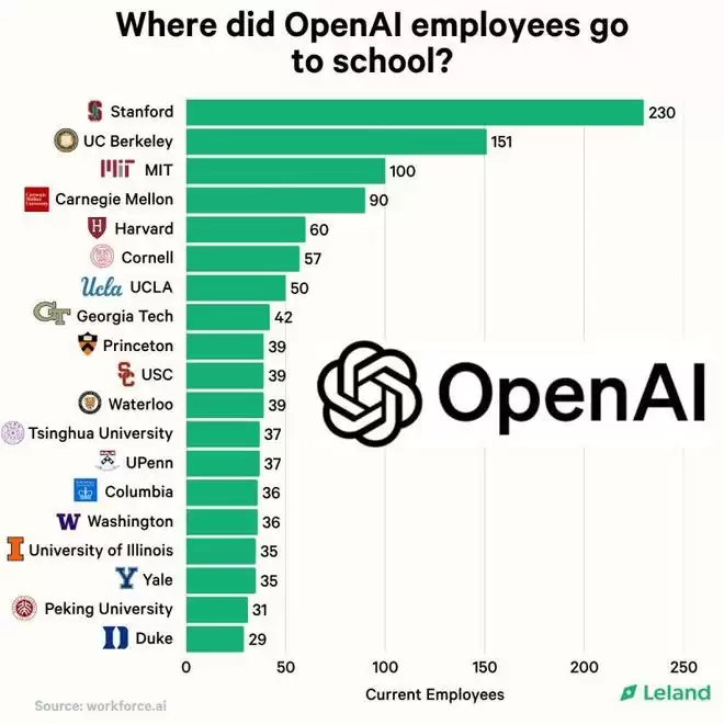 当 OpenAI 员工的母校分布图被公开时,一切变得异常清晰。