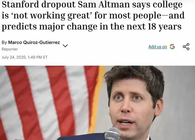 OpenAI的首席执行官奥特曼上了2年大学后,从斯坦福辍学开始创业,没有大学文凭;