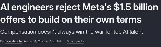 即便开出价值15亿美元的薪酬包,Meta仍未能说服部分顶尖AI工程师加入——他们选择了更具自主权的创业道路。