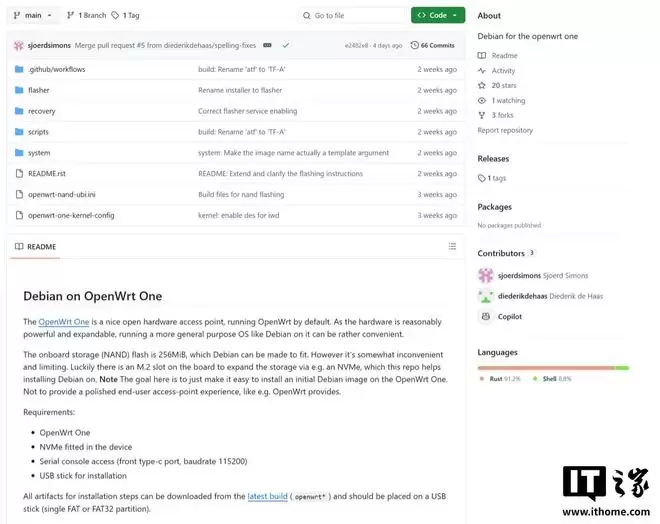 该项目提供了一个基于Rust语言的刷机工具,支持利用机内的NVMe插槽扩展存储空间。将这套系统安装到OpenWrt One路由器后,它几乎能摇身一变,成为一台紧凑型的通用Linux计算机。
