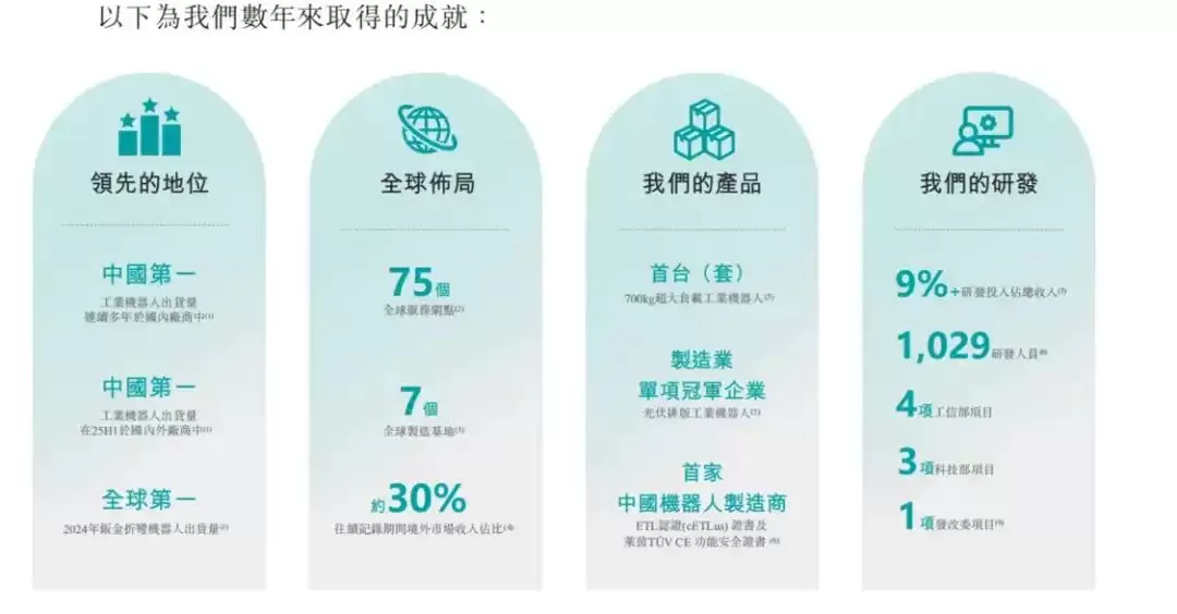 根据弗若斯特沙利文数据,公司2024年收入位列全球工业机器人厂商第六位;2025年上半年,其国内市场出货量首次超越外资品牌,连续多年保持本土第一。公司业务主要覆盖汽车、工程机械、锂电等制造领域,提供全产业链解决方案。