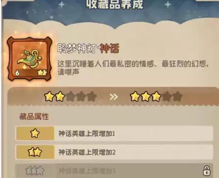在《冒险之星》中,藏品能为英雄带来全局属性与功能加成。以下是三款核心推荐:①聆梦神灯:可增加神话英雄的上阵位,新手自选必拿,建议优先升至2星以解锁4个位置;②增辉瓢虫:囤积银币可获得利息(上限200);③赞美歌唱机:保持100以上银币可提升输出,后期必备以维持战力。