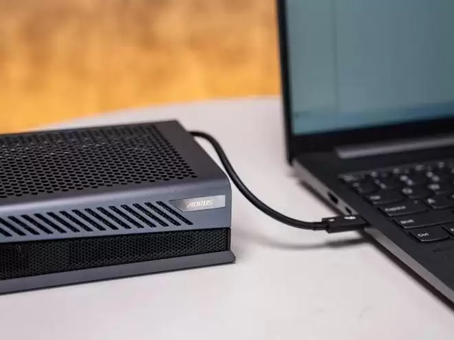 而至于这款显卡坞能做到锦上添花最重要的一点就是其搭载了雷电5接口,是这款显卡坞最关键的连接技术,相较于雷电4,带宽大幅提升,高达80Gbps,能有效降低外置显卡的性能损耗,让显卡性能更接近桌面端表现;同时实现数据传输+供电+输出三合一,在连接过程中,不用再搭配多条数据线,导致桌面乱糟糟,大大提升桌面的整洁度、美观度,甚至还可以提升移动使用的便利性。