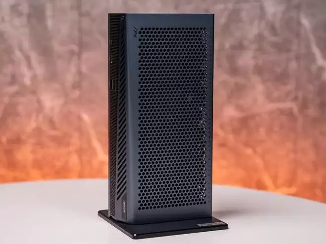 技嘉AORUS RTX 5060 Ti AI BOX最直观的优势就是其精致紧凑的大小,机身长度仅为243.7mm,尺寸堪比一个便当盒,轻松收纳进背包,便携性大幅提升。搭配磁性底座支持水平/垂直双摆放模式,桌面收纳不占地,能够非常完美地兼顾到那些注重移动性,又不愿过多牺牲性能的用户。