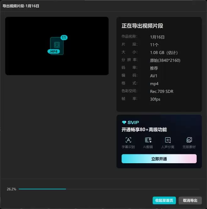 最后我们还以剪映为场景进行了实际应用测试,导出一段10分钟时长、AV1格式编码的4K 30帧视频,在技嘉AORUS RTX 5060 Ti AI BOX的帮助下,导出时长只需要95秒,比RTX 4060快了将近10%,实战表现出色。