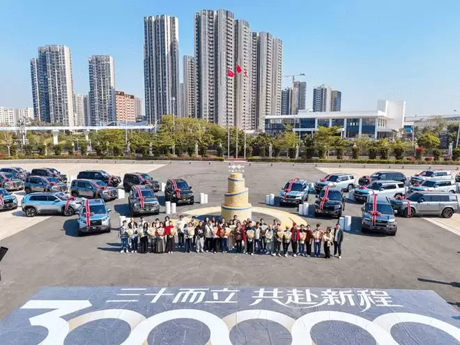 近日,方程豹成功举行了累计交付30万辆的集中活动。这一里程碑事件意味着,方程豹已成为最快达成30万辆销售目标的新势力品牌之一,位居前列,更是在20-30万元价格区间的新势力品牌中,增速排名第一。回顾2025年,方程豹的渠道网络实现了高质量加密发展,其品牌网点累计达到754个,业务范围覆盖全国268座城市。其中,一、二线及新一线城市的覆盖率均达到100%,三线城市的覆盖率也高达99%。