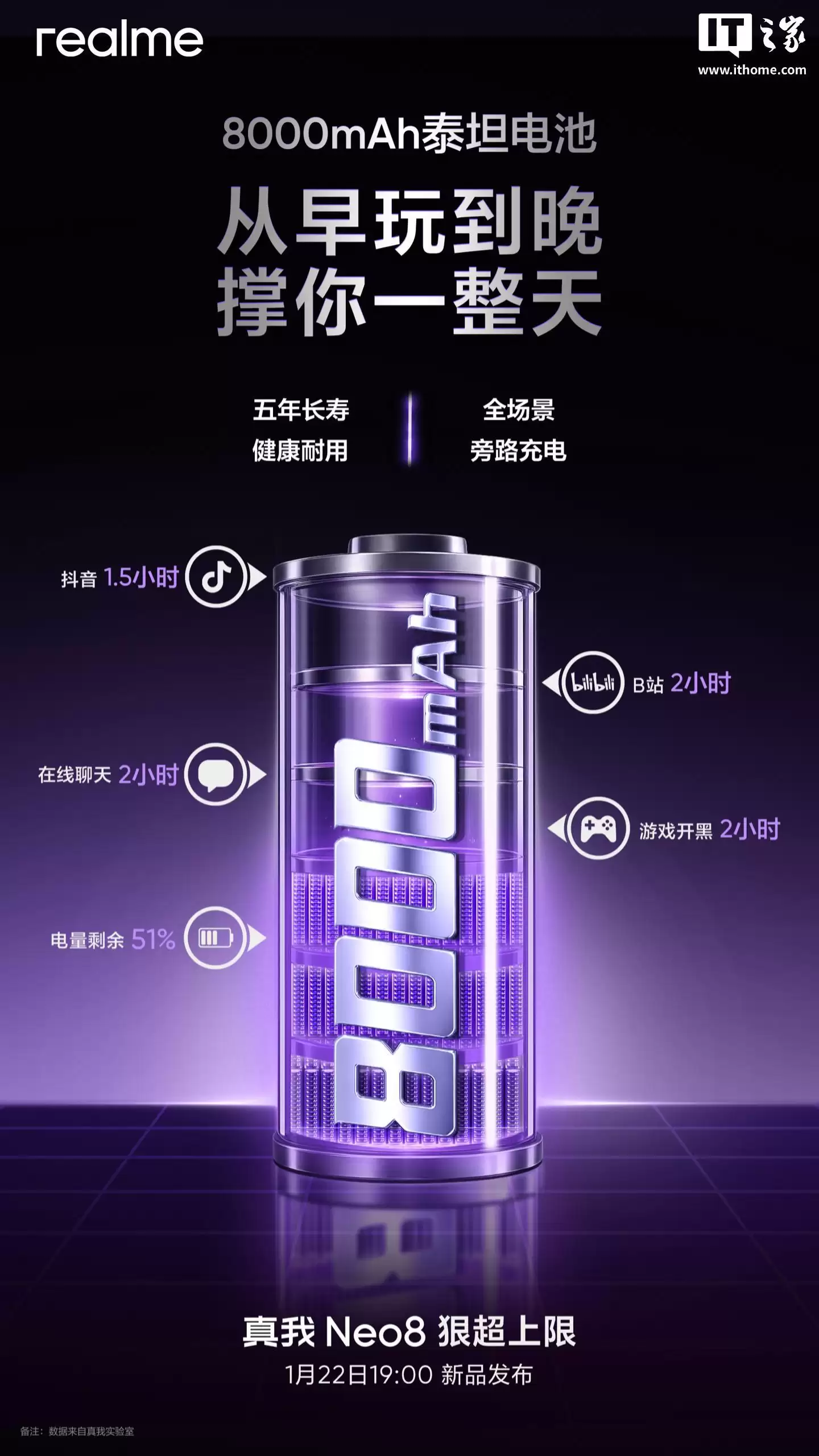综合IT之家此前报道的信息来看,realme真我Neo 8手机将于1月22日晚19:00正式发布。其核心配置亮点如下:
