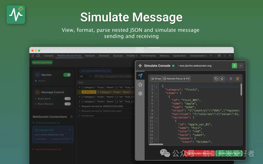 简单来说,它是一个直接嵌入 Chrome 开发者工具(DevTools)的 WebSocket 专用监控面板。