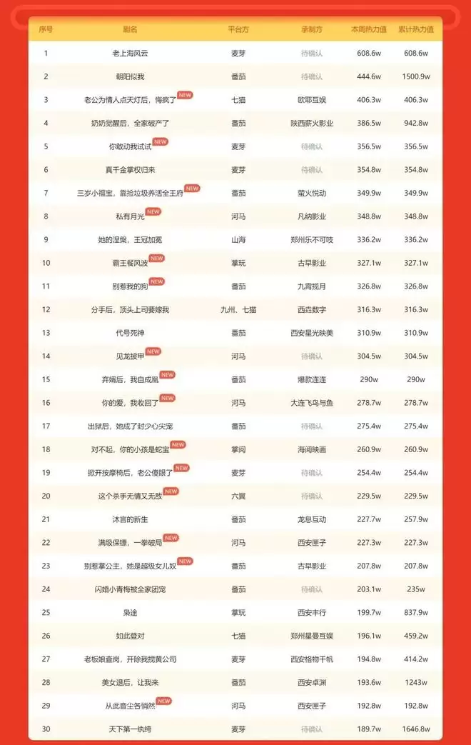 DateEye短剧热力周榜(1月5日-1月11日)