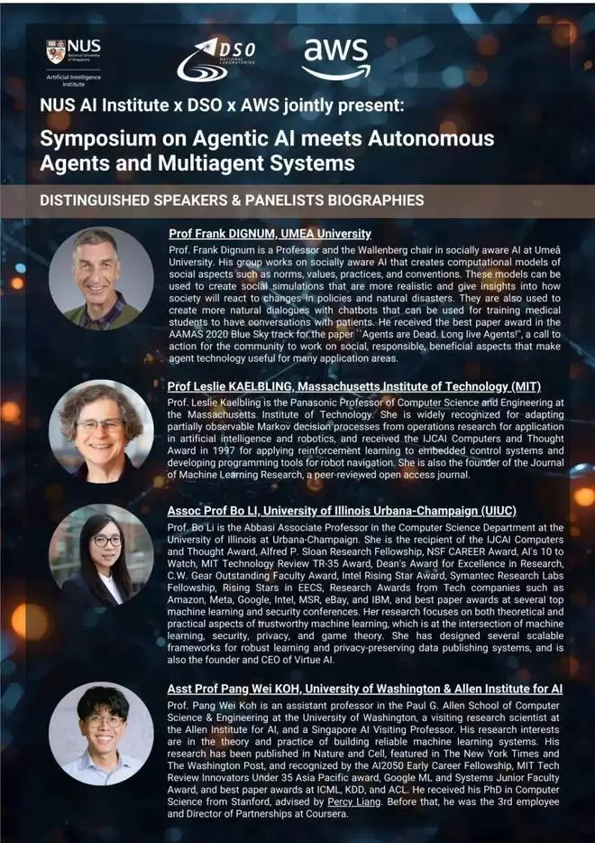 诚邀您参加由新加坡国立大学人工智能研究所(NAII)、DSO国家实验室与亚马逊云科技(AWS)联合举办的专题研讨会:“Agentic AI meets Autonomous Agents and Multiagent Systems”。