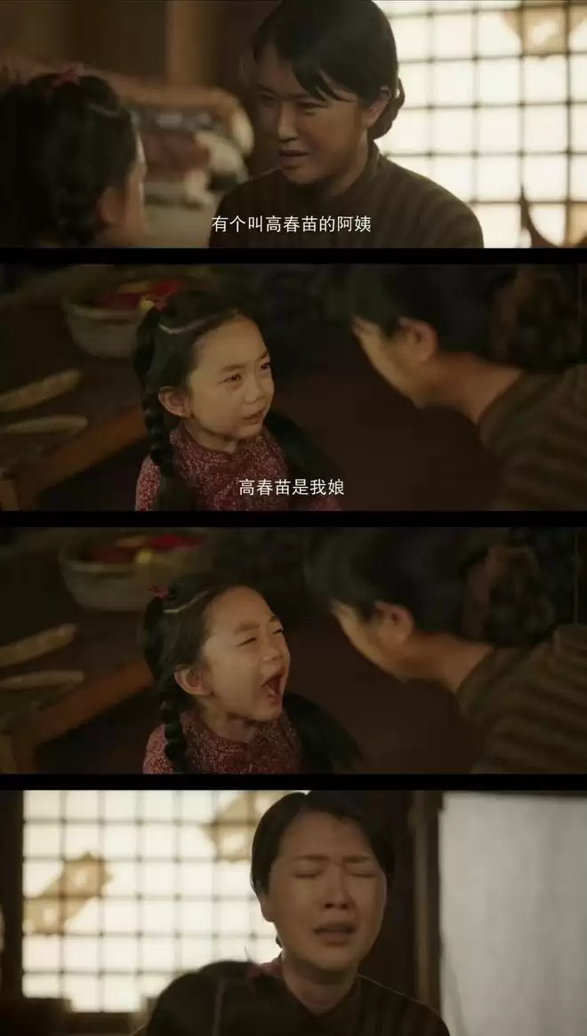 七一最为特殊,她没在保育院长大,而是被高春苗和杨老怂收养。春苗强忍泪水送别,七一那句撕心裂肺的“高春苗是我娘”直接戳爆泪腺。