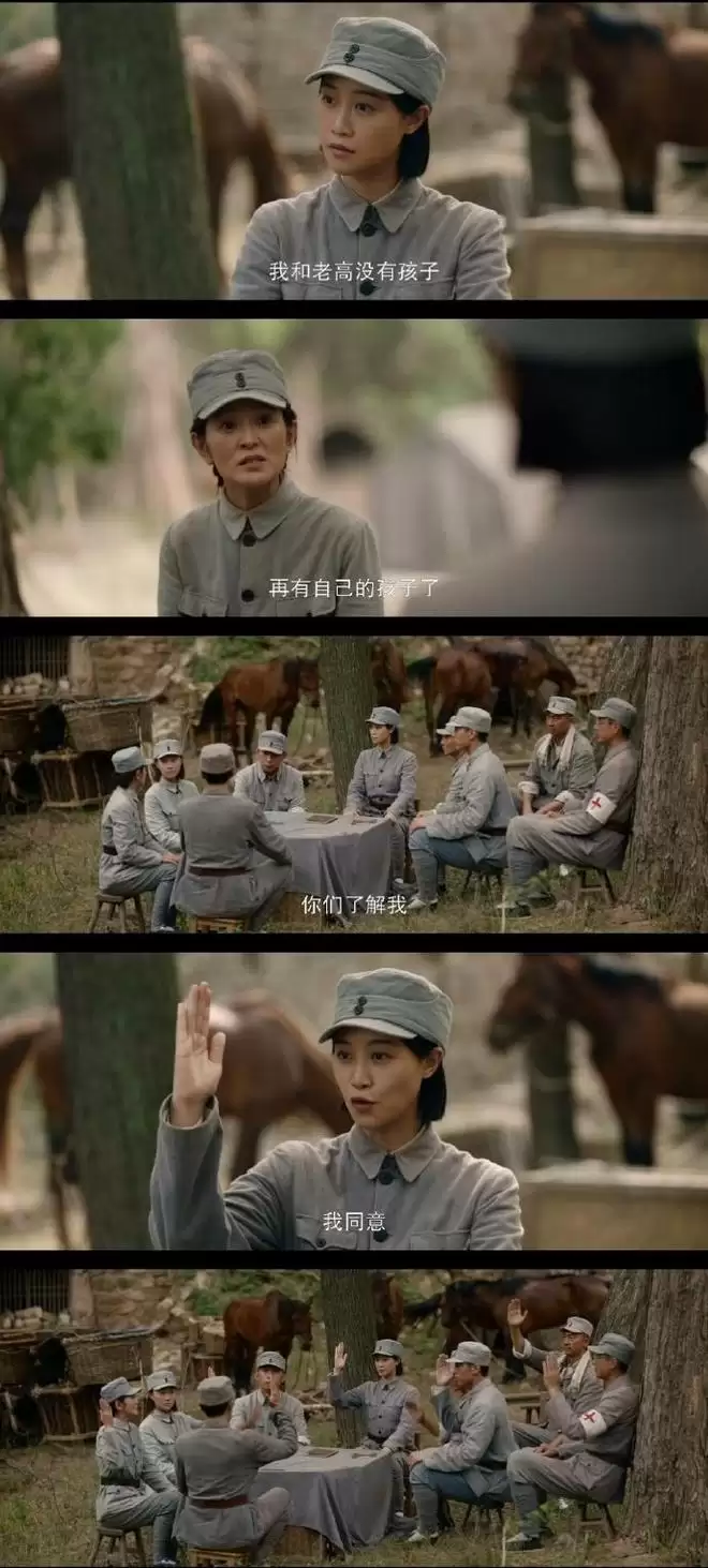 最让人感动的是渡汾河时的意外让妞妞经历了生死考验。文纫秋装有136名孩子档案,不敢贸然下水救妞妞,妞妞被冲走,她很难过,还要强装镇定,不想拖累队伍进度。文纫秋为护档案忍痛放弃救女儿妞妞,让人破防到窒息。
