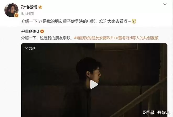 起因是董子健有新戏上,孙怡转发打call,表示“这是我的朋友董子健导演的电影,欢迎大家去看呀。”