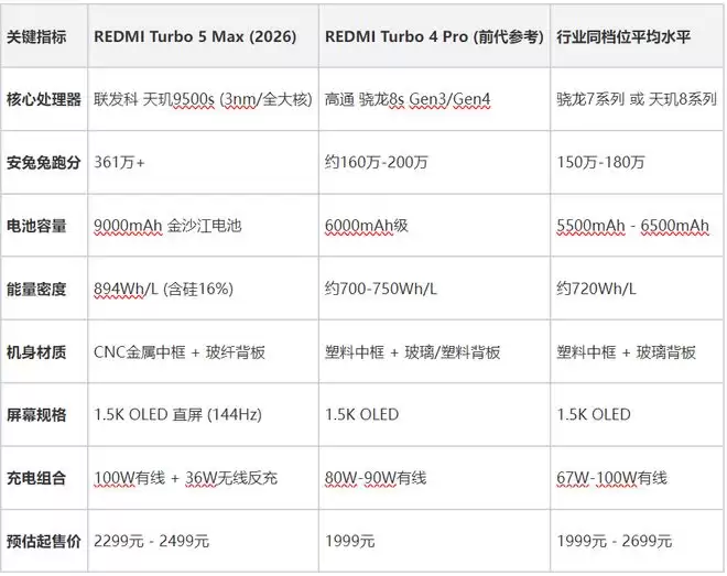 从目前的配置来看,红米Turbo 5 Max的定位已经发生了质变,不再仅仅是K系列的平替,而是在特定维度(如续航和极致能效比)上超越了正代旗舰。