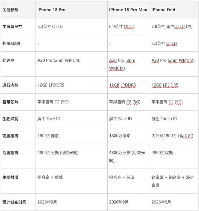 这种调整并非心血来潮,2026年秋季苹果将集中火力发布三款重磅旗舰:iPhone18 Pro、iPhone18 Pro Max以及传闻已久的iPhone Fold。