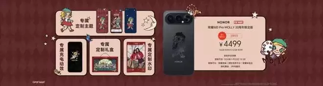 荣耀500 Pro MOLLY 20周年限定版16+512GB,定价为4499元,可叠加国补。