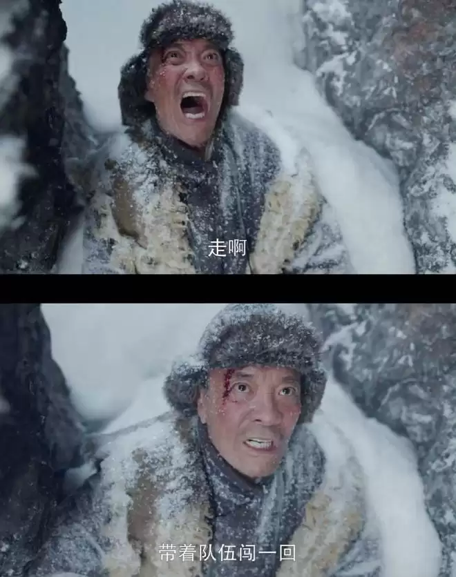 老村长不幸掉入雪坑中,却不许大家来营救他。他深知绵山风雪的危险,不愿小队再有人牺牲,也不想耽误小队的行程。下山后众人向老村长牺牲的方向敬礼,致敬舍己为人的老村长。