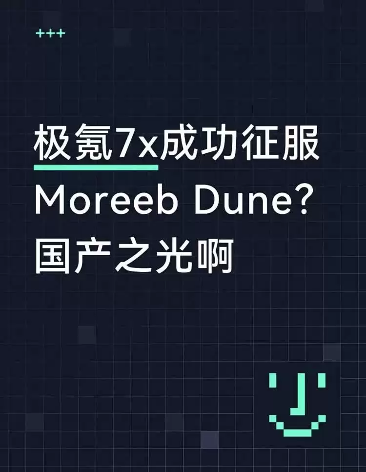 近日,一段国产纯电SUV挑战中东"恐怖之丘"的視頻在海外社交平台引发热议。画面中,一辆未经深度改装、仅对外观进行轻度优化的极氪7X,在沙丘陡坡上如履平地般轻松登顶。而现场多辆传统硬派越野车却因动力不足或陷入沙地而折戟,形成了鲜明对比。