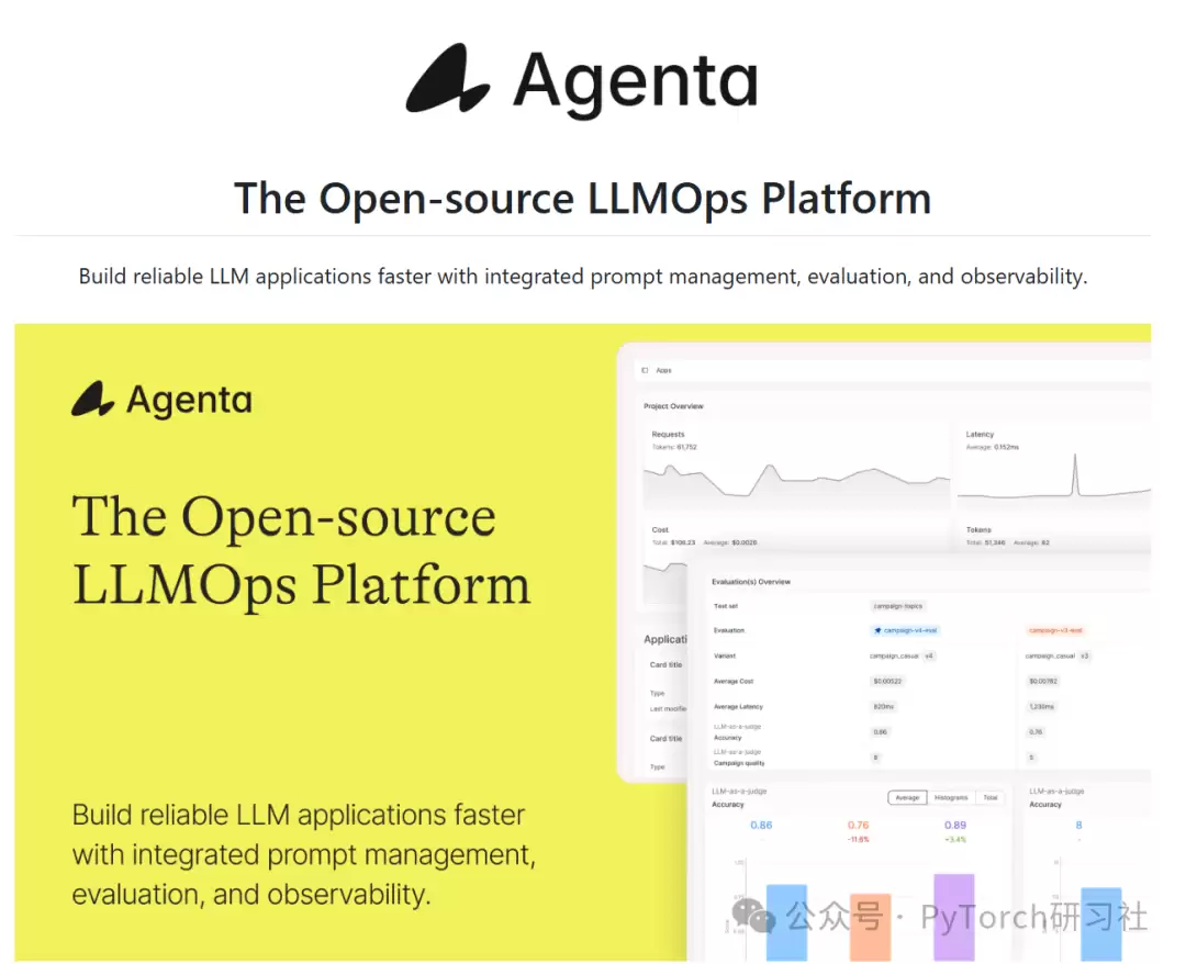 Agenta 致力于将 LLM 开发从“散兵游勇”式的状态,转变为结构化的流水线作业。其最新定位是:“一体化开源 LLMOps 平台:集提示词实验场、提示词管理、模型评估与可观测性于一身。”