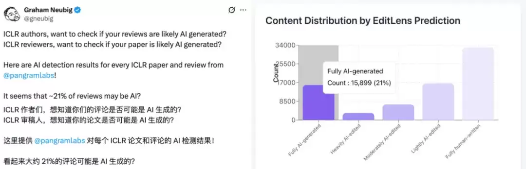就像我们之前报道的,第三方机构对 ICLR 2026 的审稿意见进行了系统性统计,其中就发现了大量 AI 审稿的现象。