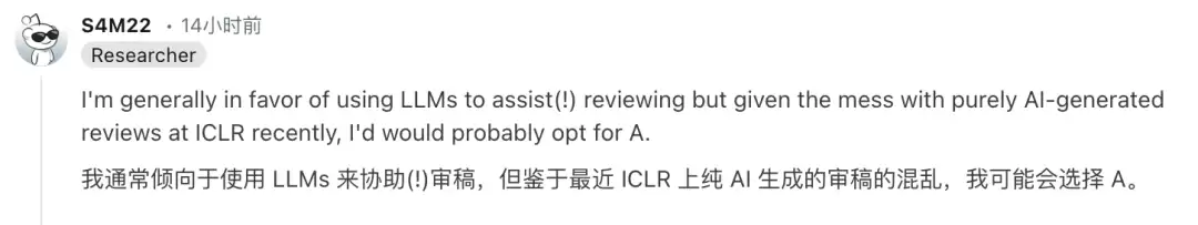许多网友也表达了类似的看法。AI 审稿已经达到了泛滥的程度,这恐怕也不是 ICML 2026 这次的政策 B 能够完全限制的。