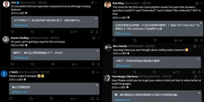 此外,还有用户吐槽个别模型回答质量不稳定,或建议增加更多小语种支持,例如瑞士德语,以及在语音转写和文本转语音中覆盖更广泛的语言和口音。