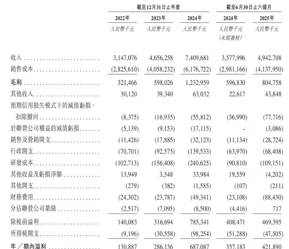 根据已披露的财务数据,协创数据的营业收入呈现出强劲的增长态势。在2024财年,公司总收入达到74.097亿元人民币;仅2025年上半年的收入就已实现49.427亿元。这一增长主要由多重动力驱动:物联网设备需求激增、人工智能技术加速落地,以及云计算与大数据应用的广泛普及,共同推动了客户群体的扩张和产品服务需求的持续攀升。在此期间,公司的毛利润分别录得3.215亿元、5.98亿元、12.33亿元和8.048亿元,毛利率从10.2%显著提升至16.6%;净利润则从1.309亿元大幅增长至6.871亿元,其中2025年上半年已达到4.219亿元。