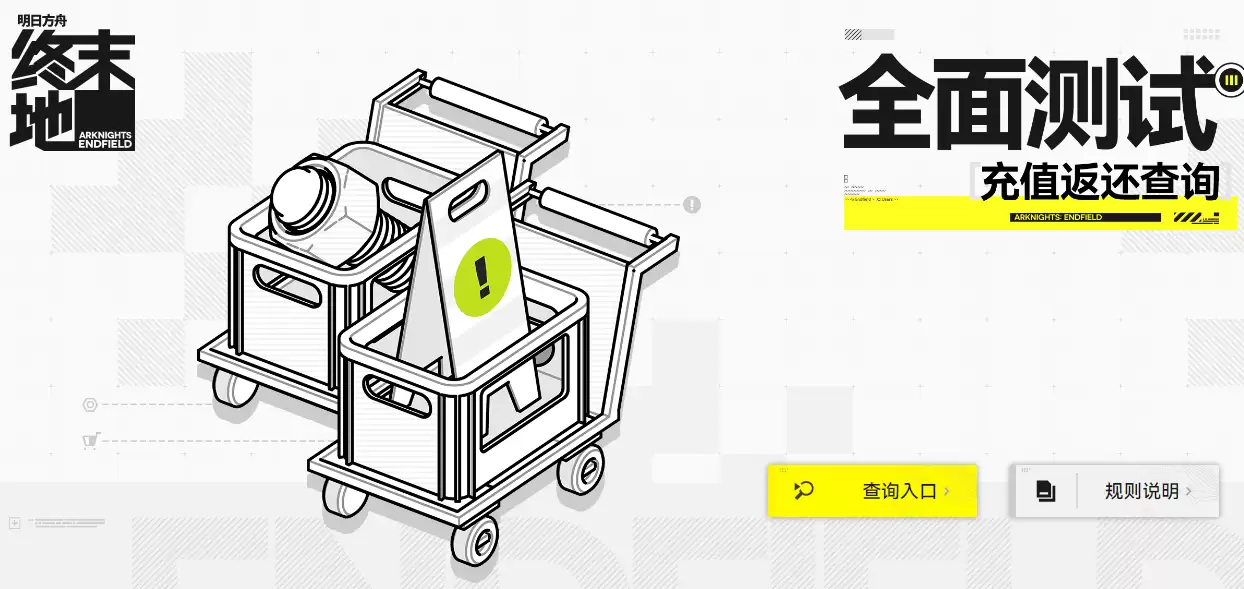 《明日方舟:终末地》充值返还查询入口现已正式开放。在全面测试期间进行的所有充值,都将在游戏公测后通过游戏内邮件统一返还。请各位玩家务必使用参与测试时充值的同一鹰角通行证账号登录并领取,返还邮件的有效期为365天。游戏公测将于1月22日开启,参与预约还可获得包含五星干员、寻访凭证在内的丰厚奖励。