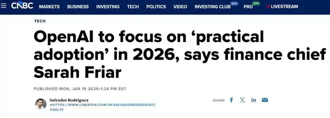 【环球网科技综合报道】1月20日消息,据CNBC、axios称,OpenAI首席财务官莎拉·弗莱尔(Sarah Friar)近日宣布,该公司将 2026 年定为“实际应用之年”,旨在弥合人工智能技术能力与现实世界使用场景之间的差距。