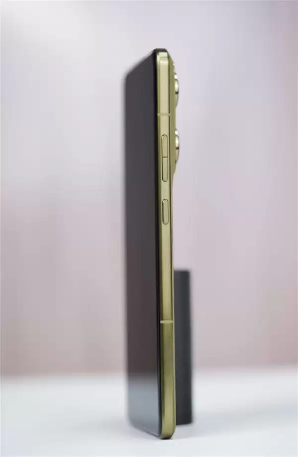 新机可选墨岚黑、梧桐金两款配色,我们手上的是梧桐金版本。