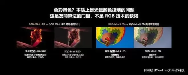 面对行业中关于RGB芯片寿命、光晕控制等问题的讨论,海信在发布会上以实测数据作出了回应。